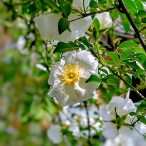 自然たっぷりな里の友人を訪ねました 庭先に真っ白なお花が咲き誇っていました 🍀ナニワイバラ バラ科 バラ属