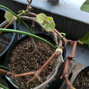 ぶどうスチューベン🍇 酷暑🥵で、 ほとんど葉焼けしてしまい… もう枯れたかも😱😭 そう思っていました…😔 この2〜3日雨の日☔が続いたから? なんと😳😳😳新芽🌱が、出てくれました😆 剪定も難しく感じていたので、 花を見るどころが、実も成らず😭 鉢と支柱の立て方を検討中です📝🧐