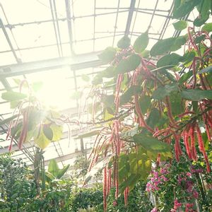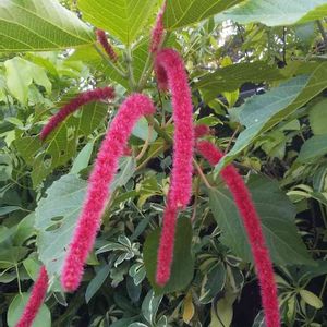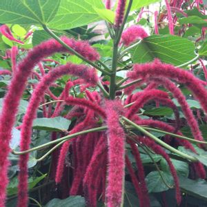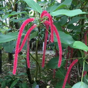 夢の島熱帯植物館 ベニヒモノキもいっぱい咲いていました。 赤いモフモフ❣️可愛いです!