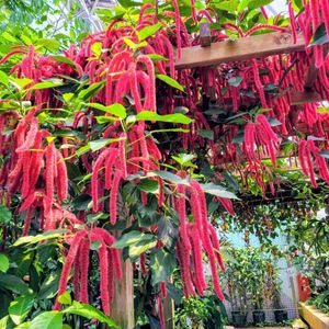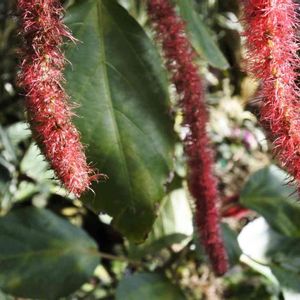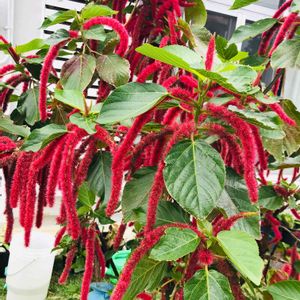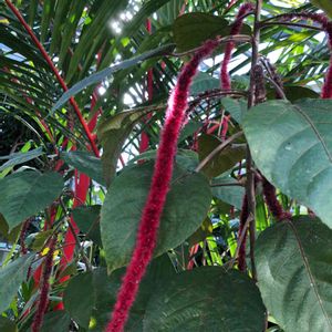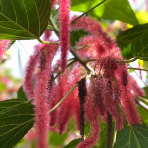 【ベニヒモノキ】《トウダイグサ科》 キャットテイルより長い紐状の 垂れる紅色の花序 通称「サンデリー」fox tail