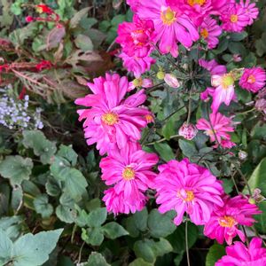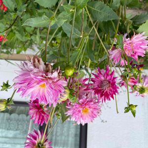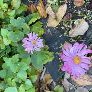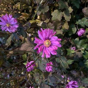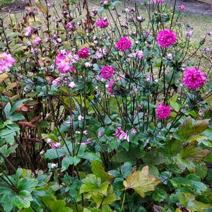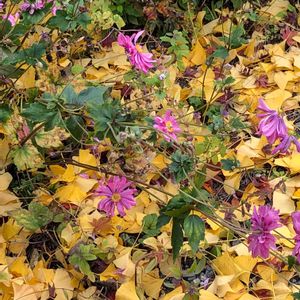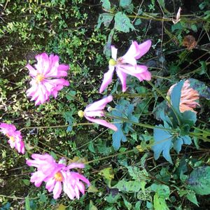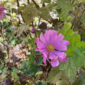 ピンク色の秋明菊の側に八重咲きの秋明菊も咲いていました。