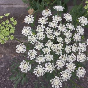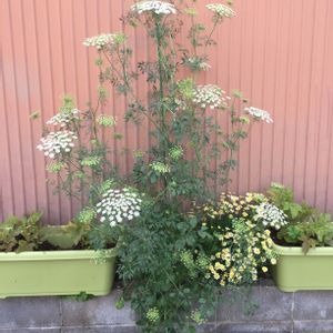 ■レースフラワー 切り花買って押し花作ってたけど、去年苗を見つけて自分で育てて収穫して押し花作ろう!と植えたやつw 去年アブラ虫とか酷くって結局押し花には使えなかったけど…w 冬に枯れたと思ってたら今年また芽を出して… それがどんどん巨大化して、今身長くらい?w 家の基礎とブロックの隙間20cm程度のスペースでよくこんなに大きくなったもんだ!w 斜めになってきたからこないだ支柱挿して支えましたょ〜! ブロックから下にも垂れ下がって咲いてるからさらに大きく見えますょ〜!w 次の投稿に続くw