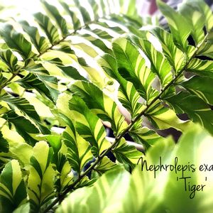 ◎ネフロレピス・E・タイガー 我が家にもマーブル模様のシダが仲間入りしました🌿 日本ではハッピーマーブルという流通名で 売られてるみたいですが シダで有名なオランダのビトロプラス社で生産された苗を 日本国内の優良生産者さんが育てたものなら ネフロレピス・タイガー(シディシダ・タイガー)が正式名称です😊 日本にタマシダは3種類程度しか存在しないそうで お店に並んでる観葉植物のシダはタマシダではなく ほとんどシディシダ(シデーシダ)だそうです 明るいライムグリーンのマーブル模様が美しいですが オランダではトラの模様をイメージしてタイガーと名付けたようです🐅