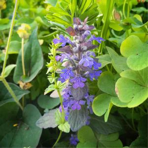 雑草に隠れるように、ジュウニヒトエ(アジュガ?)。