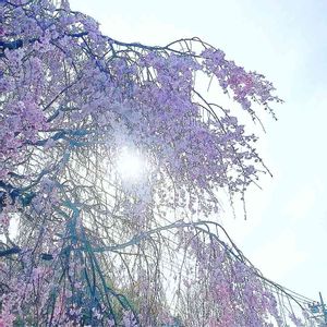 陽が傾いてきた、日曜日の枝垂れ桜。