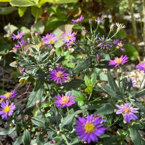庭の記録 11/2 今日のお花がノコンギクですが、なかなか野に咲く ノコンギクは見に行けてないので 先日庭に植えたノコンギクを1枚目に♪ ①ノコンギク HCで売っていたノコンギク とても花色が濃いですね。 秋に庭の花があまりないので 残っていた5ポットを買ってきました。 ②小菊の「さとの」 今年は切り戻しの時期と切る位置が 難しいなと思いました。 それでもかわいい花が見られそうです。 ③アシズリノジギク 昨年花屋さんで売られていました。 葉っぱがシルバーで縁取りもあって 庭が明るくなります。 もう少しで咲きますね♪ ④ビンデス 詳しい名前は何だったか? 買った時は花弁が黄色かったのに 今は赤くなりました。 なかなか素敵なワイン色? これもキク科ですね。 ⑤ガイラルディア グレープセンセーション 庭に1株だけになり 株分したのは枯れてしまったので 追加で植えてみました。 横に広がるので小さな庭には不向きだなぁと 思っていましたが 色と花後の丸い形がやっぱり可愛いわ♡ 来年の秋ははキク科の花であふれる庭になる⁉︎(≧∀≦)