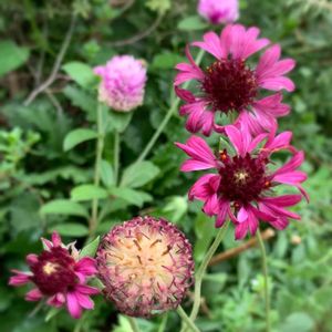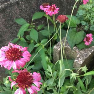 ガイラルディアが次々咲いてます💕 後ろは種から育った千日紅✨ 雨がポツポツ降りだしました☂️