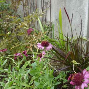 スカビオサが暑さと長雨で枯れてしまったので、ガイラルディアに植え替えしました。お花の色に合わせて、パープルファウンテングラスも一緒に。