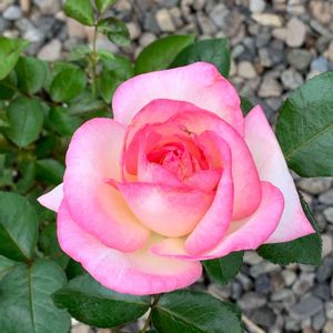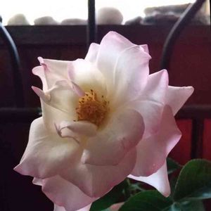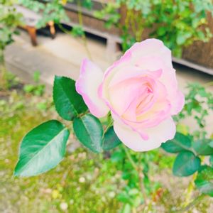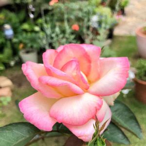 初めて我が家に来たバラです。ピンクの縁どりが可愛い💕