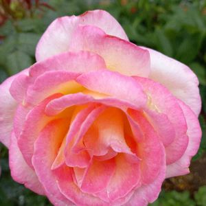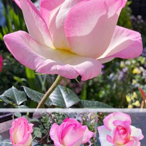 *プリンセスドゥモナコ* 1982年にグレース公妃に捧げられた二つ目のバラです。(一つ目はグレースドゥモナコ) このバラはグレース公妃が第一回モナコ国際バラ会議に際し個人的に選んだものです。 作出したメイアンはこの新しい品種に(プレファランス)という名前をつけようとしました。でも審査委員長の公妃は一目見てこのバラに恋してしまい自分に捧げて欲しいとお願いしたのです。願いはすぐに受け入れられました。 本当に悲しい事に公妃は翌年自動車事故で旅立ってしまいます。 このバラに生前に出会っていた事を知ることは、バラを愛するものにとって、せめてものなぐさめになるでしょう。 このバラの花姿は本当にゴージャスでなおかつその明るいピンクと白の色合いは上品で優しい印象を与えます。 遠く別世界のアメリカの映画界からやってきたプリンセスが今なお尊敬される存在であることを象徴するかのようです。 篠宮バラ園スタッフS写し