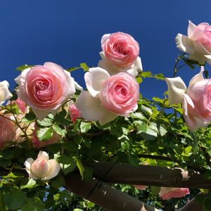 🎶 今日のお花 バラ ♫ 過去picですが、忘れられない一枚です💓 青空に向かって咲く姿にパワーを貰いました☺ 🌹昨年5月撮影したお庭のピエールドゥロンサール🌹