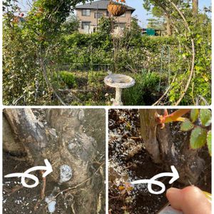 丸いアーチ両サイドにピエールちゃん 右側の苗が元気ないなと根本確認した所でた😱鉄砲虫の木くずひゃー😭💦💦 すぐさま穴を探し薬を注入逆側から何匹か出てきました〰️キモ😱肉眼で初めてみたかも💦これで鉄砲虫被害3苗め💦 わかってる範囲でだから怖い😱😱😱 周りにオルトラン巻いてしばらく様子みます😆
