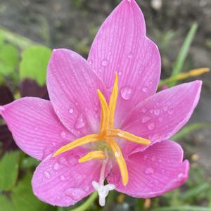 ゼフィランサス🌸 別名 レインリリー☔️ 今朝はツボミが膨らんでたから 明日あたりかなぁ? と思ってたらもう咲いていました♪ 雨に刺激されたかな🤗
