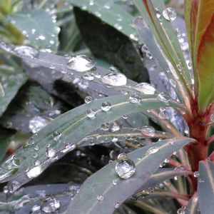 ①②雨の日のユーフォルビア ブラックバード🩶✨ ③元々は濃い紫色なんですが、 一つの枝からグリーン🍀な葉っぱが出てきてびっくり!👀