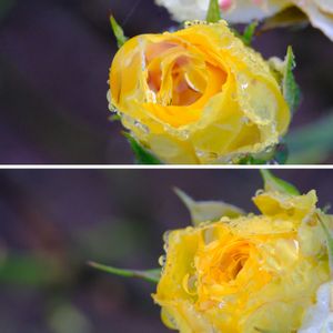 日曜の朝の撮影です。 雨の後で小さなバラはずぶ濡れです。
