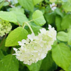 🏷️ビューティフルサンデー 真っ白な柏葉紫陽花が素敵です✨✨✨ ソフトクリームが食べたくなりました🍦😋🤍🤍🤍 2枚目、装飾花に守られてるような☺️ものと、放任な?😅花の様子