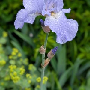 ☔ 雨上がりの庭 ☀️.° 1⃣ジャーマンアイリス 水滴💧と柔らかな色が綺麗です✨ 2️⃣3️⃣今日のスターリィヘブンズさん🌹 うっとりとする美しさ°・*:.。.☆ 良い香りなので一輪カットして室内に飾りました(⑉• •⑉)🩷 4️⃣5️⃣PWラグランジア ブライダルシャワー🤍 咲き始めました«٩(*´ ꒳ `*)۶»ワクワク