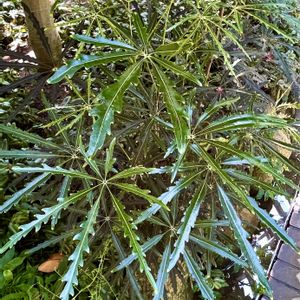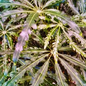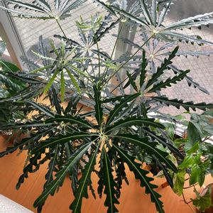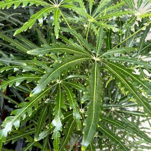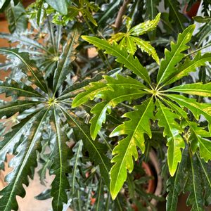5月26日 今日のお花 💠 アラレア 💠 アラレア(ディジゴセカ) ウコギ科の観葉植物です。 ♪細かく光沢のあるギザギザ(ノコギリ葉)の葉は幼株時に見られ、株が成長すると、葉の幅が太くなり、ウコギ科特有のヤツデのような葉をたたえます。 別名:ディジゴセカ、モミジバアラリア、ノコギリヤツデ、孔雀木