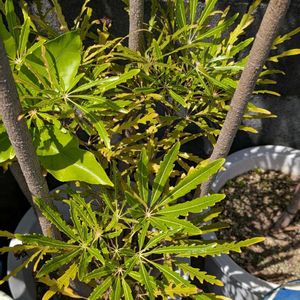 今日のお花「アラレア」のpic、ウコギ科プレランドラ属の観葉植物です。😊😄🌿 ①アラレア 一昨年の5月にパチリ!📸 ②ヒイラギ 今年の1月にパチリ!📸 ◾️学名: ディジゴセカ・エレガンティシマ、別名: ノコギリヤツデ、孔雀木。🤗 ◾️アラレアは葉全体がギザギザと尖っていますので、ヒイラギのような風水効果※があります。🤔 ※魔除けに、鬼門👹の北東や裏鬼門👹の南西に置くのが良いそうです。🌞✌️