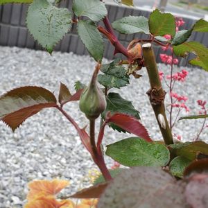 イングリッドバーグマンの蕾が膨らんできてます🌹 まだかな~まだかな~と楽しみにしてます😆 ただ、どのバラさんも黒星がいっぱい出てるのが心配です😂