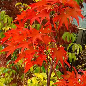 今年はきれいに色づいて来た有明モミジ! 注意しないと夏の間に葉が焼けてしまい、秋まで残すのが難しいです。