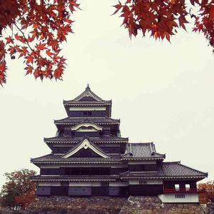 🍁モミジを入れてみたくて、木の下から撮影📷 松本城🏯