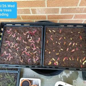2020.8/.26.Wed_種蒔き、紅葉🍁 紅葉2種類の種を取り撒き。 一つは枝垂れ系紅葉🍁 買い物先の帰り道、商業用敷地内の看板の近くに植えてある枝垂れ系紅葉から。 丁度剪定されたばかりのようで、樹形なんて考えない、ただただバッサリ丸刈りされててパッと見「枝垂れ、かな?」なんてマジマジと見て確認してしまいました💦 もう一つは、レストランの駐車場内に植えてあった紅葉から🍁 もしかしたら、まだ若い実だったかもなので、今回はダメ元で撒いて実験です。