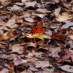 誰も居ない山の中。 カエデとモミジの葉っぱが降り積もって上を歩くとふかふかしている。 黄色い葉の上でシュタッ!と立ってキメポーズの赤い葉っぱを発見! 上手い具合に立てってますなぁ。。。折角のキメポーズを崩さないよう迂回して通りましょうか。