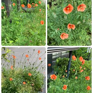 『ナガミヒナゲシ🧡🌿』 ⬆️お椀形🥣 ➡️黒ホクロ付き ⬇️四角形🟧 色々なバージョン 見つけましたよ🔍👀