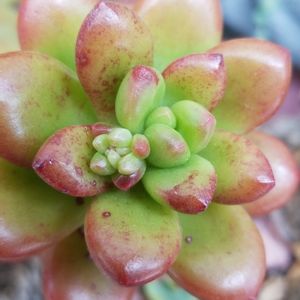 こんにちは☁️ 艶々葉にぽっちゃりやや肉厚葉先が赤く紅葉色づいて可愛らしいです 花芽も出てきました