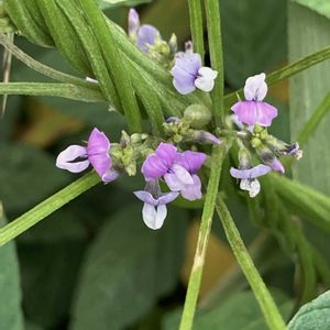1️⃣ツルマメ(蔓豆)の豆です。枝豆をちっちゃくした感じです。 2️⃣一ヶ月前のツルマメの花です。