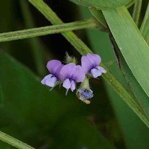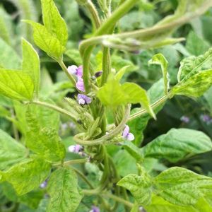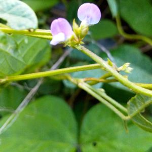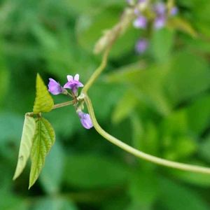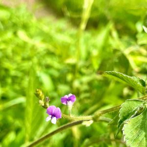 散歩の途中🚶♂️ 紫色の小さな可愛い花です🥰 日本の在来種で大豆の原種とされています🧐 夏には欠かせない麦酒🍻と枝豆もツルマメさんのおかげですね🤗 特に今年は麦酒🍻が旨い💦🤣 花が小さく、茎の腋に添うように咲いていて、その上を10㎝大の葉が覆っているので上からは殆ど見つけられません。 マメ科ダイズ属 つる性一年草 蔓豆 日本全土の野原や道端などに生える。 別名:ノマメ ダイズの原種とされる。 原産地:在来種 開花期:8-9月 花は淡紅色で蝶形をし長さ5-8㎜、葉腋に3-4個ずつつく。花は2枚の花弁と、それより小さい2枚の淡紅色の花弁からなる。