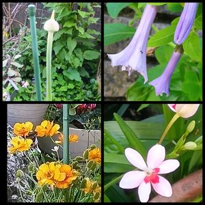 薔薇🌹 満開のを 捨てられないから1輪挿しに。 姫ヒオウギ こぼれダネで毎年 咲きます。 ミニ エンゼルトランペット 4輪目がさきました。 最初のは咲き終わりました。 トリフォリウム 徐々に咲いて きてます。