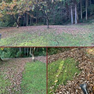 栗の落ち葉を自慢のブロワで 散らかしてます 🍂🍂😚🥳😚🍂🍂 乾燥してるので良く飛び散ります 訂正。。。集めて山側に飛ばしてます