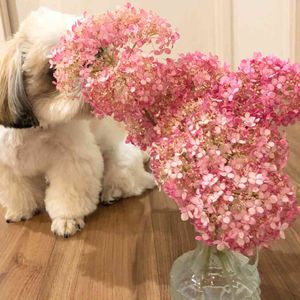 ピンクアナベルたくさん咲いていたので、色が薄くなってきたお花だけ切りました❤️ 挿木予定です🥺❤️ 昨年も剪定したものが挿木成功して今年お花を咲かせています😳 愛犬リリーがお花の匂いを嗅いでいます🐶
