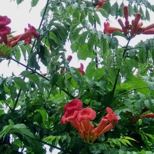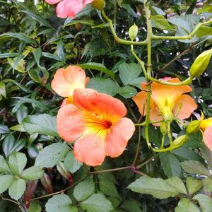 今日のお花 ノウゼンカズラ 雨に潤ってますねぇ~( ⑉¯ ꇴ ¯⑉ ) 今日も雨☔🌧です💧💦 良い一日をお過ごし下さいねぇ (*˙˘˙*)ஐ