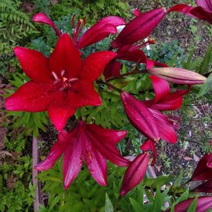 ちょっとビターな感じの 赤い百合 お隣さんのお花です 百合も素敵だわぁ (ღ*ˇ ˇ*)。o