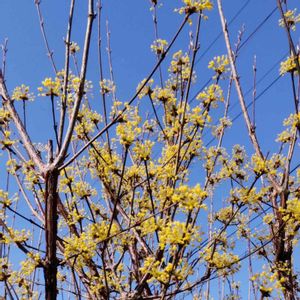 ご近所さんのサンシュユ 青空にクッキリでした💛
