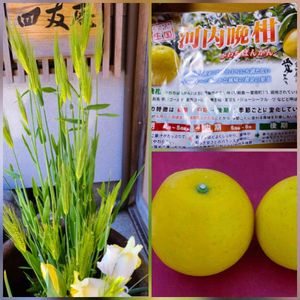 犬友🐕🐶幸っちゃんのママから 河内晩柑 お裾分けして頂きました とっても美味しいかったです💛 ( ´͈ ᵕ `͈ )♡😋 昨年、ムギの種を見せてくれたけど、植える所が無いからって 貰わなかったの😅 麦とアイリスのpicが送られてきました 素敵に生けられてますねぇ💕 ✧* 。(๑°꒵°๑)・*♡