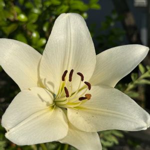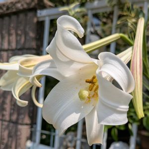 品種不明のテッポウユリ 純白で大ぶりの花が見事