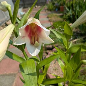 豪雨の後… テッポウユリの花が咲きました…🤍 パイナップル🍍リリーは 今年も咲きそうにないですが 代わりにテッポウユリの花が 見事にパイナップル🍍リリーの花のよう… 🤣
