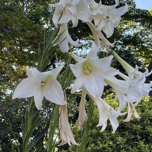 おはようございます😊 テッボウユリ ユリ科 咲きました✨🤍 2枚目は《ラグランジア シャンデリーニ》 モリモリに咲いています🤍 さっちゃん発信 🏷️白い水曜日♡ かねーちゃん発信 🏷️白い貴婦人✨