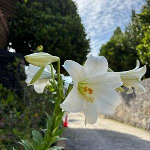 テッポウユリ🤍 貴重な白いお花🥰 大きくて存在感があります✨ 毎日暑いですが みなさんお元気ですか? GSを見て癒されましょう🌸🌼