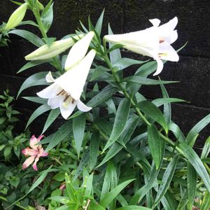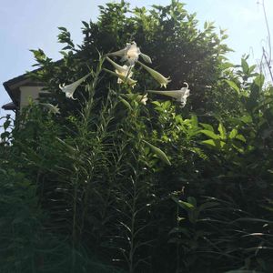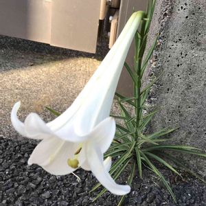 コンクリートの割れ目からてっぽうゆりが👀