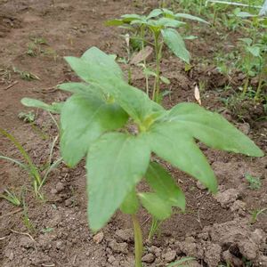 ヒマワリも植えてみてるんですが、 段取りが悪かったせいで、徒長なえだったんですよね。。 心配で間引きする気にも慣れなかったので、そのままで💧 支柱と土寄せで無事育ってくれないかな??