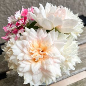 ① リラ なんとかいくつかはボーリングしないで咲いてくれました😅 ② 真宙 このあとちゃんと開いてくれたけどどれもコガネムシにお花を汚されてしまいました🥺 ③ 粉粧楼 今年は時間なくて土も替えずでしたがたくさん咲いてくれてます✿*
