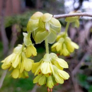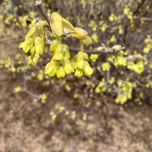 今日の母の庭 ①土佐水木💛 後ろの紅梅とお互いに引き立て合っています。 ②山茱萸も💛 ③伊予水木も💛 ④草木瓜 棘が痛そう ⑤貝母百合 草の中では、目立ちません。