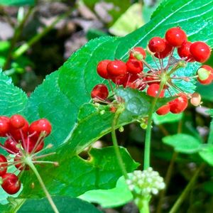 真っ赤な実をふたつ🔴 ↑トチバニンジン(栃葉人参) 栃葉は、トチノキの葉に似ているため🔴 ↓ソウシシヨウニンジン(相思子様人参)🔴⚫ この実が、相思子(トウアズキの生薬名)の実によく似ているため 先日行った御岳山で📷 🏷️真っ赤な火曜日 トチバニンジンとソウシシヨウニンジンは、実以外は変わらないそうです🤔
