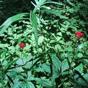 こんにちは🔥☀️ 今の合言葉は ◯◯◯ですね💦 この前 御岳山のレンゲショウマ観に行った時 ①その近くのあちこちにあった赤い実🔴 ②葉っぱを観ると トチノキに似ている 調べたら そのままで トチバニンジン 初めましてです😅 薬草とあり 赤い実かなと思ったら 根っこだそう☺️ 咳を鎮めたり 痰を切るなどが薬効 日本原産です