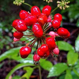 線香花火を逆さまにしたような装い トチバニンジンの真っ赤な果実には夏がよく似合う!